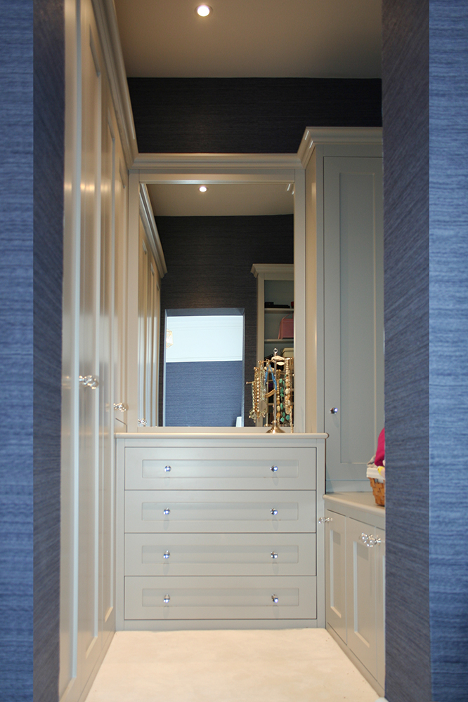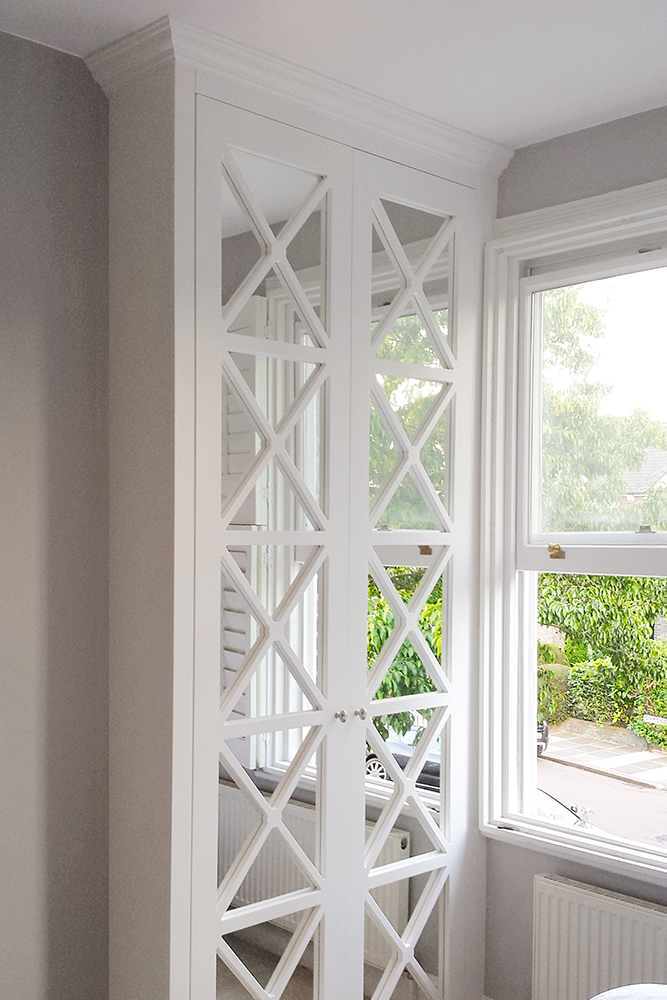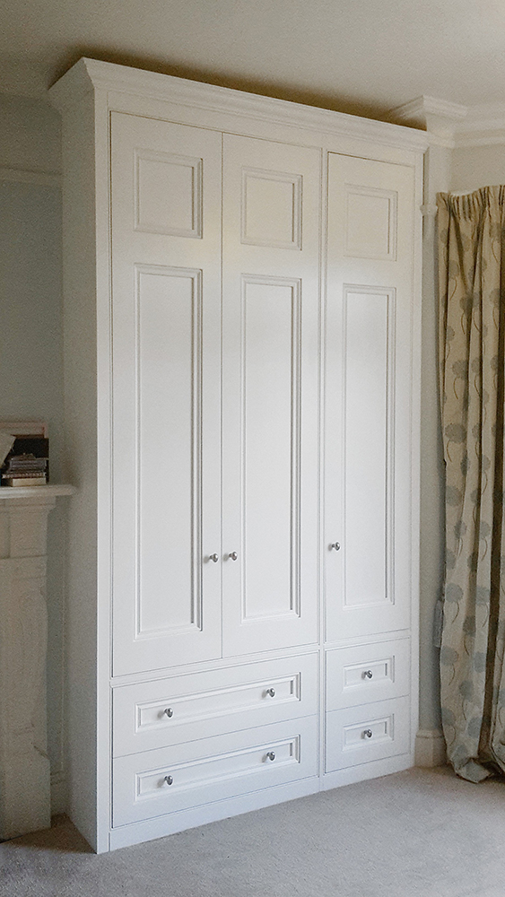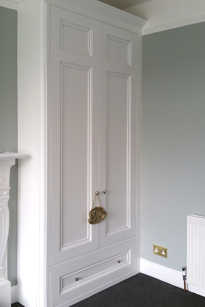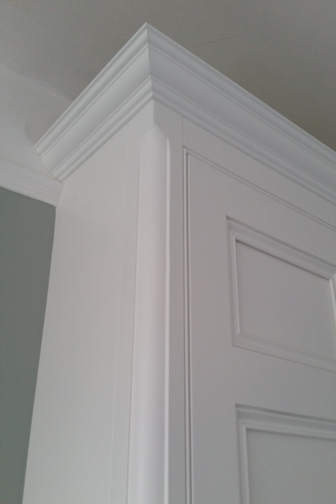 The cabinet doors have a deep panel achieved by a separate back panel which also has scotia detail. This means the panel mould can be the same size as the ones in original doors without projecting. The one we use as standard has the conventional ogee along with an additional quirk and round over for additional effect.