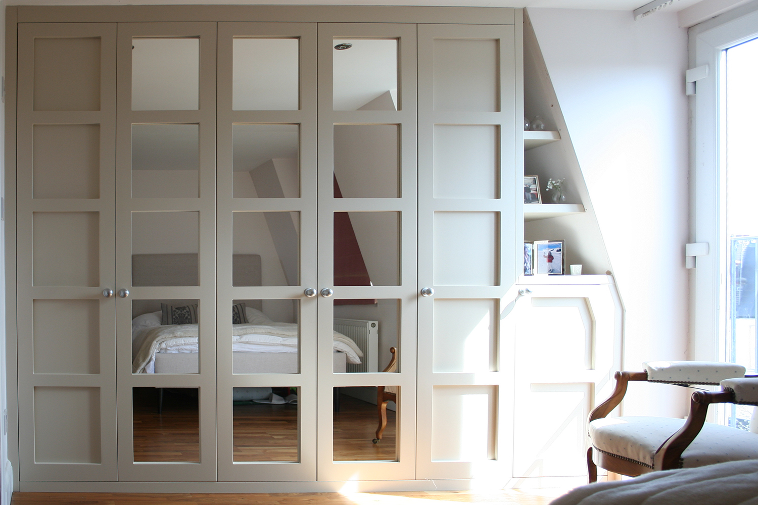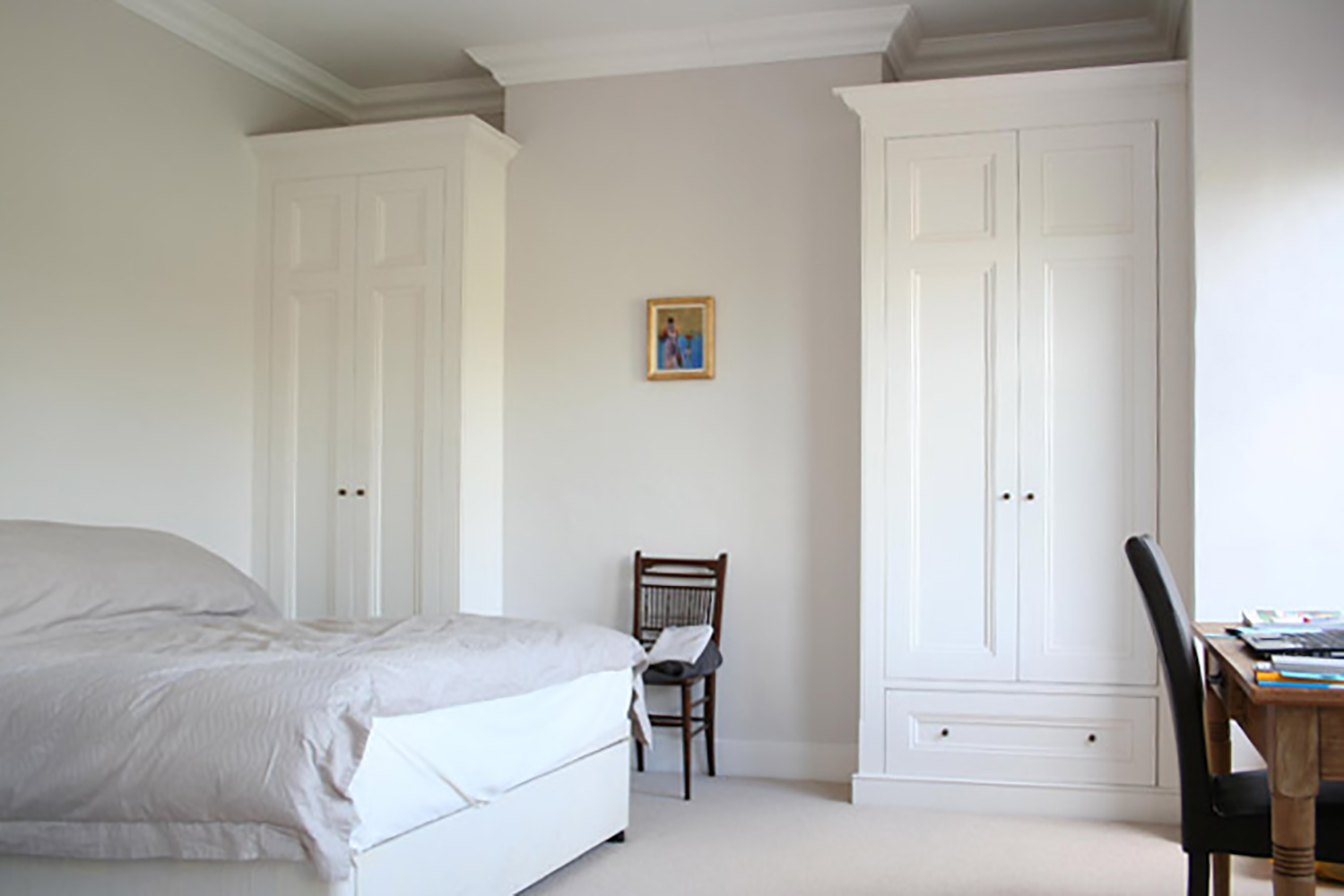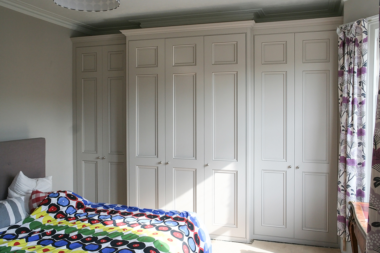 The cabinet doors have a deep panel achieved by a separate back panel which also has scotia detail. This means the panel mould can be the same size as the ones in original doors without projecting. The one we use as standard has the conventional ogee along with an additional quirk and round over for additional effect.