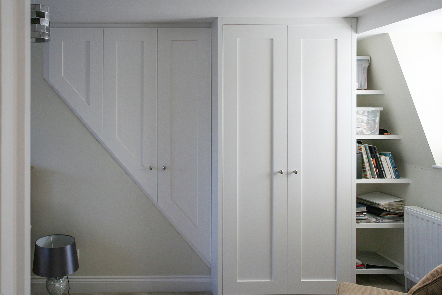 Our shaker style is designed to be as plain as possible with just a simple panel to break up the facade. You could also call it servant style or back of the door style as it is often on smaller rooms that you will see it in Victorian houses. Once upon a time you would have well known how important you were in your hosts eyes by the size and type of mouldings in the room you were allocated! The panel is shallower than on the Victorian style as we inset the back flush because in our opinion a shallower panel looks more appropriate and is neater. There is a small round in the corner of the panels as they are cut out by a computer numerically controlled machine from mdf not made by religious enthusiasts from beech. We are happy to square the corners out with a traditional chisel should you prefer. We put with a simple arris ,removing the sharp corner as part of the sanding process, around the edges of framing and doors. We use a single 25mm thick worktop if needed with a bull nose moulding and a plainer cornice if required than on our Victorian style with one large quirked ogee. We often combine this style with minimal tops and or Victorian beading to create what with some small risk of pretension could be called postmodern.