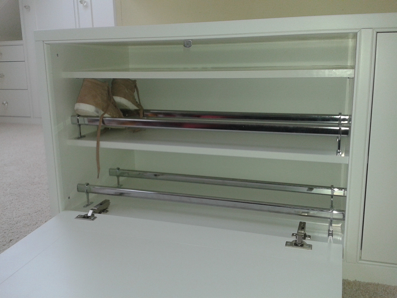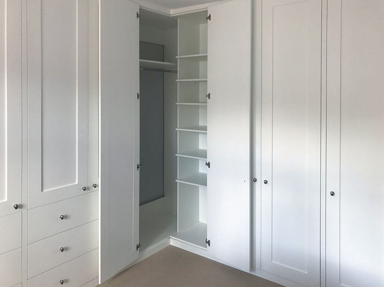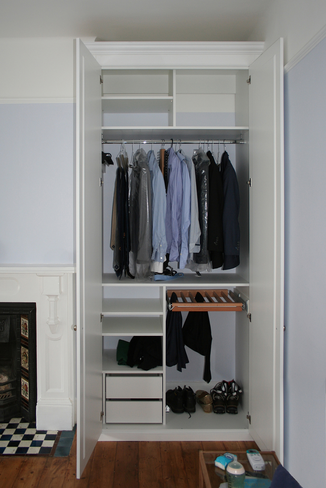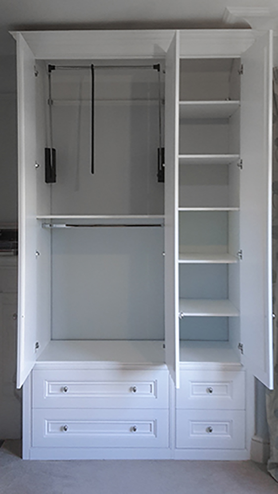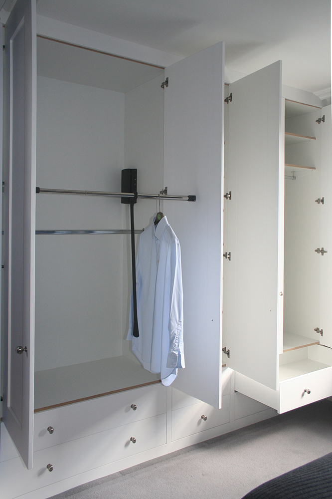 Spaced in storage starts with the principle of fitting the biggest box that we can into any given space that will look as small as possible once the doors are shut. Inside that box we make as much as possible adjustable/easily removable because if a customer changes their mind at any point it is nice if a hammer does not have to be involved.